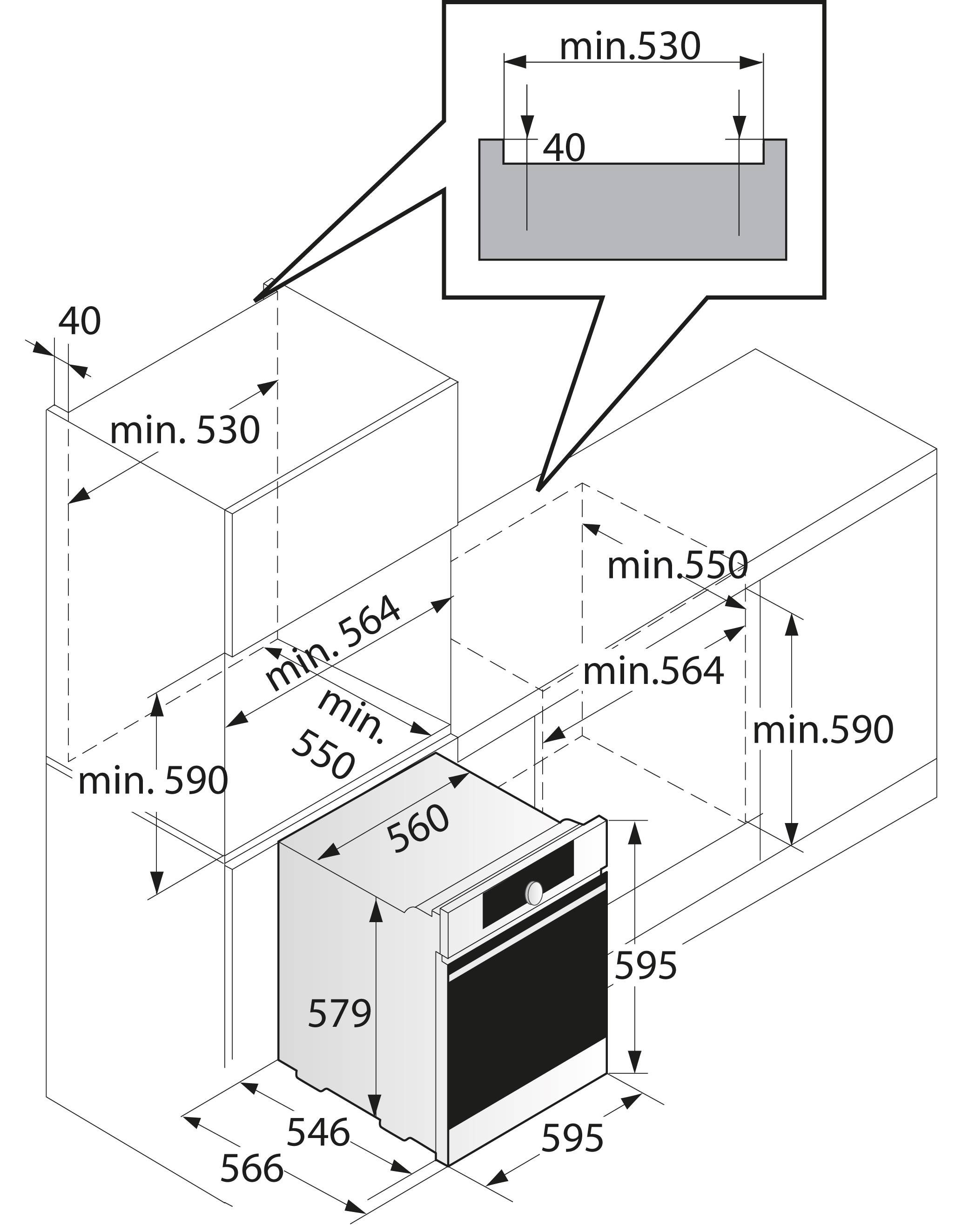 Габариты ниши для встраивания (ВхШхГ) 59х56.4х55