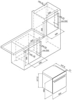 Размеры ниши (ШхГхВ) 595x593x595 мм.
