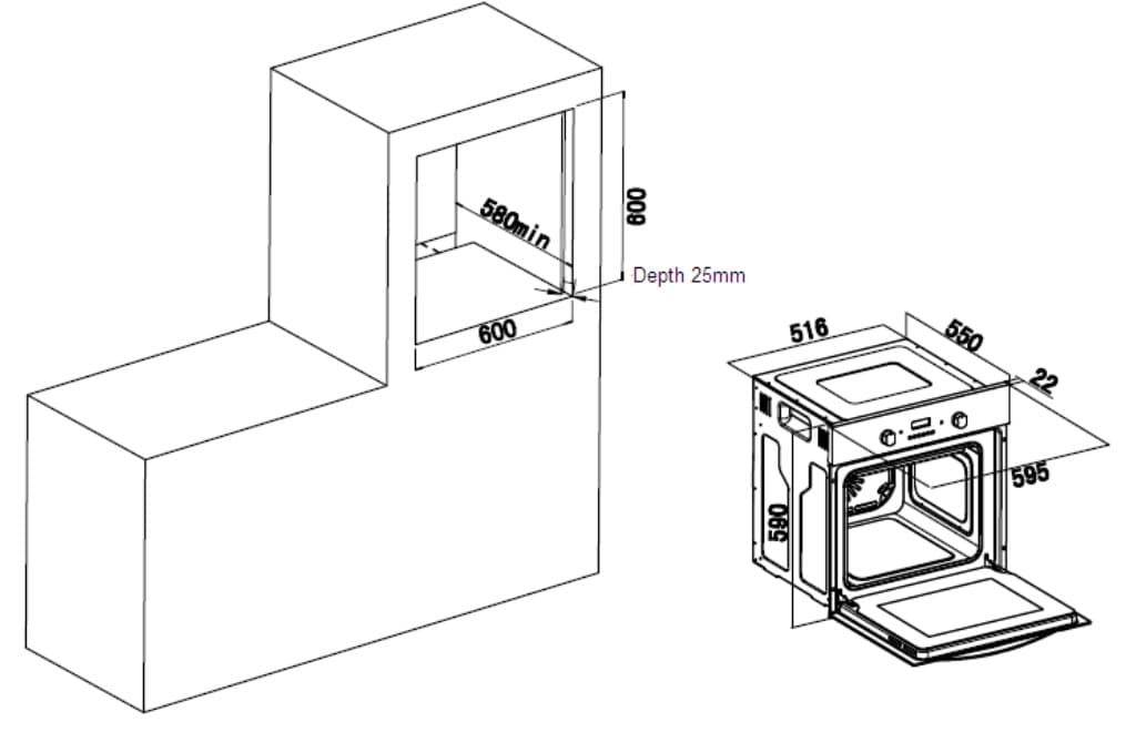 Термическая изоляция и тангенциальная вентиляция. Энергетическая эффективность является плодом тщательного проектирования, с высокой теплоизоляцией от несущей структуры. Тангенциальная вентиляция, создает поток воздуха между камерой готовки и наружным корпусом, снижая температуру внешних поверхностей. Духовка такого типа не подвергает мебель высоким перепадом температуры.