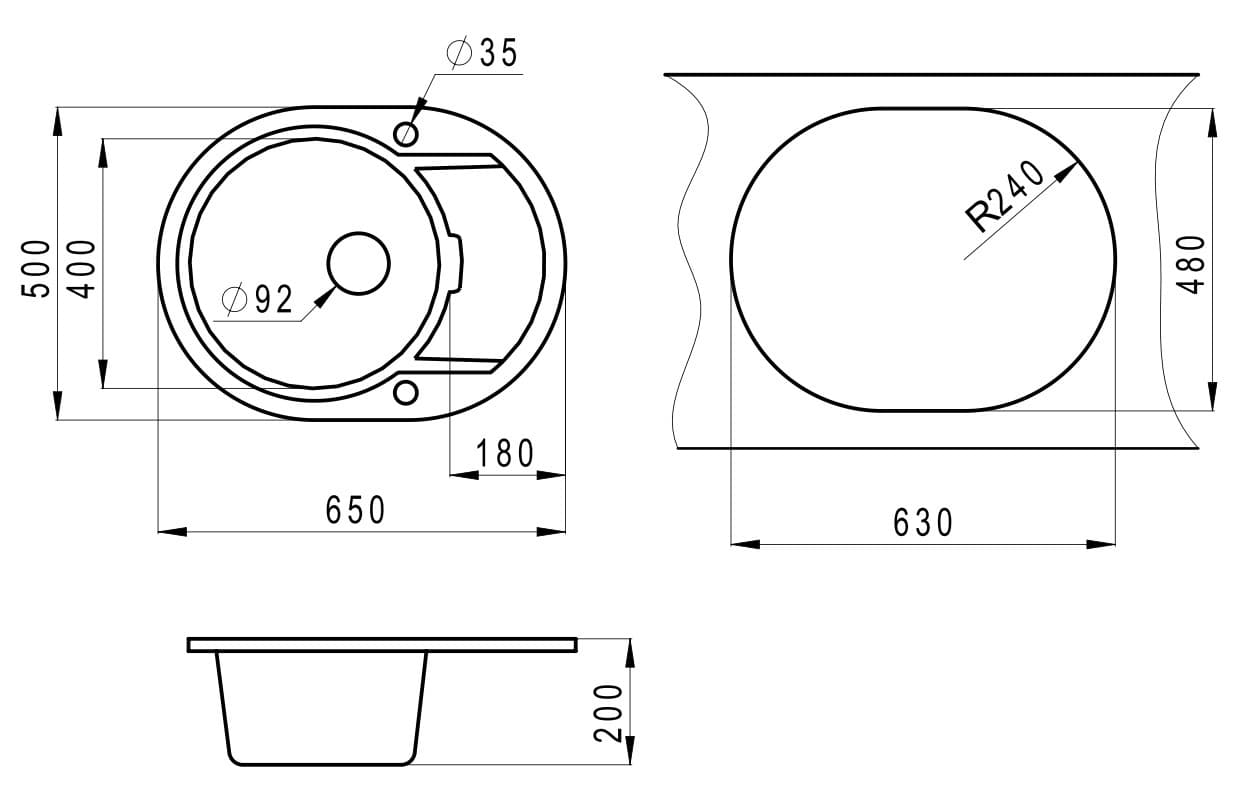 Глубина чаши 200 мм