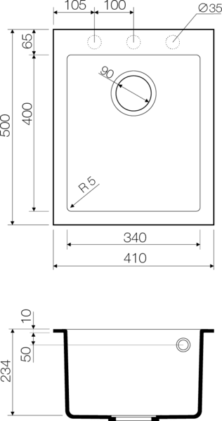 Размер мойки 500 х 410 мм