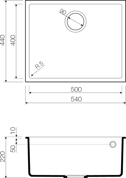 Размер мойки 440 х 540 мм