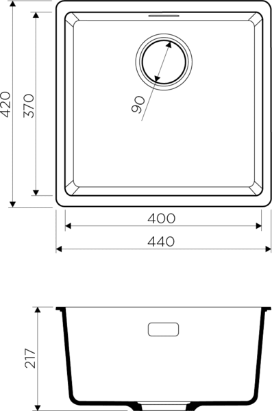 Размер выреза под мойку 400х370 мм., угловой радиус врезки 12 мм.