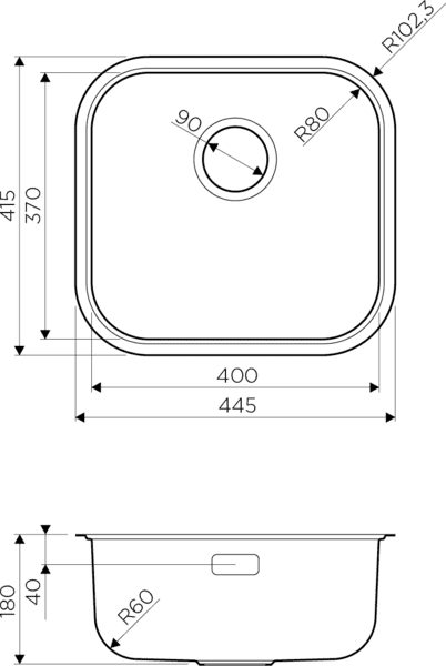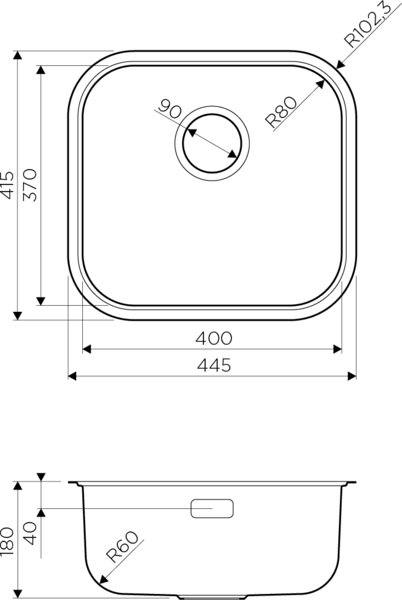 Размер мойки 415 х 445 мм