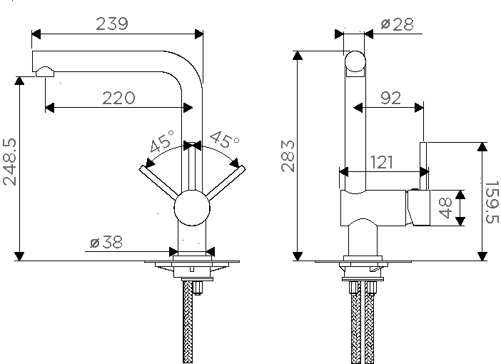 Высота излива 283 мм