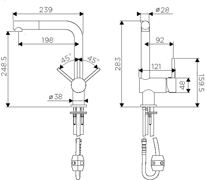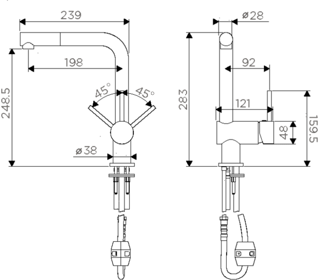 Кухонный смеситель Omoikiri Tanigawa-SХарактеристики