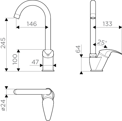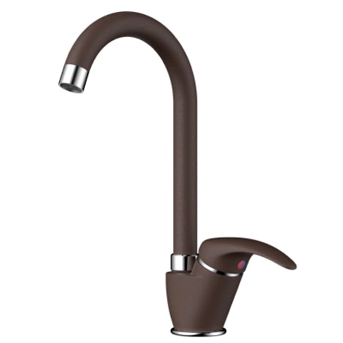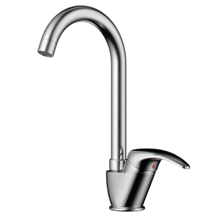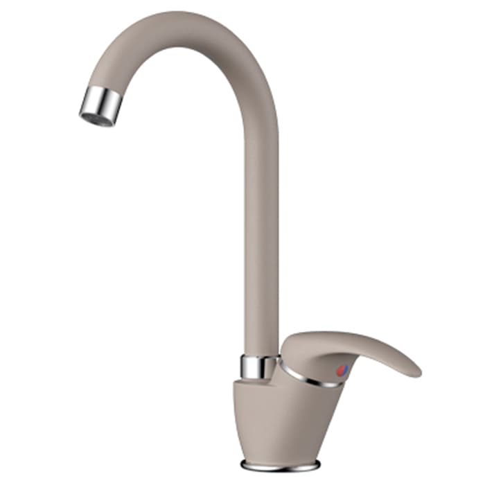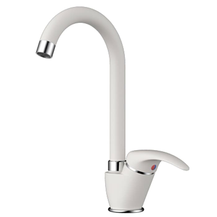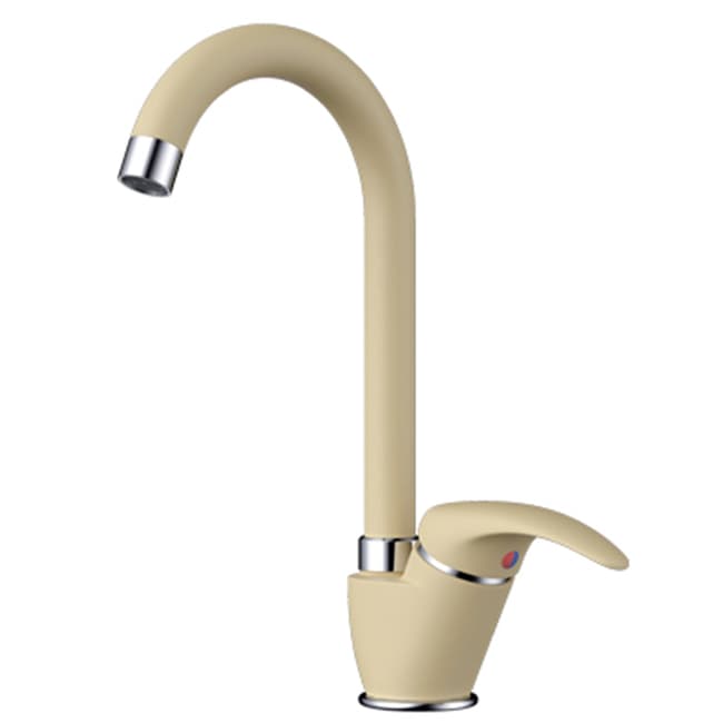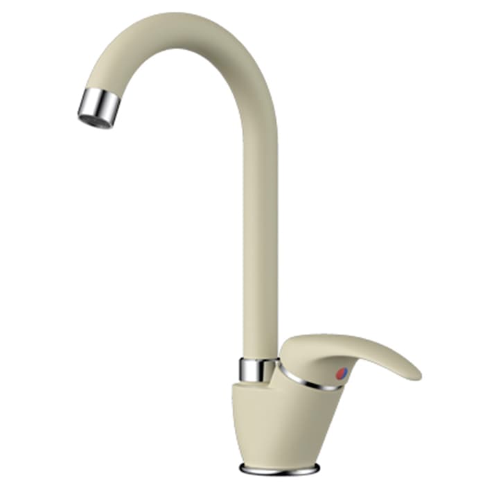 Смеситель выполнен в современном стиле и снабжен высоким поворотным изливом.Аэратор произведен из пластика, благодаря чему на нем никогда не появятся известковый налет и ржавчина.