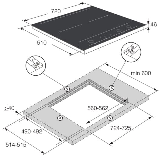 Тип установки варочной панели Flush installation